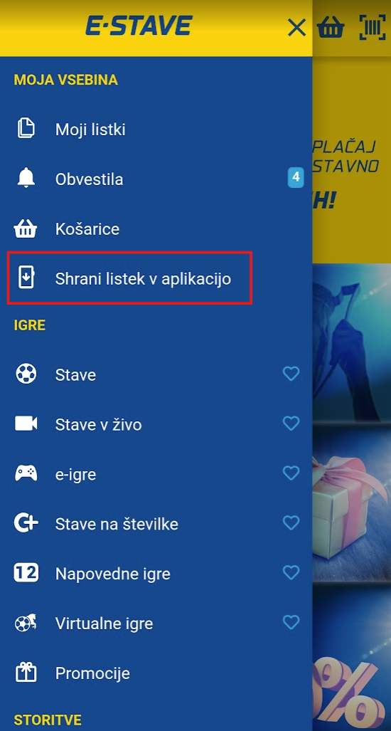 - V meniju MOJA VSEBINA izberite Shrani listek v aplikacijo